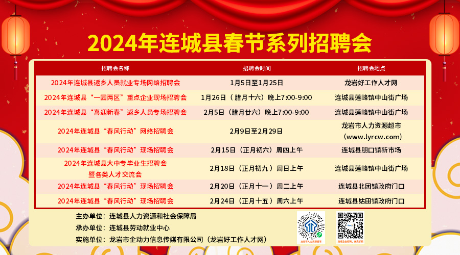 2024年龍巖市連城縣“春風(fēng)行動”系列招聘會