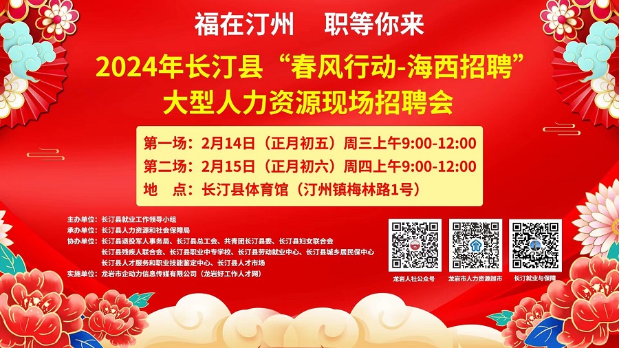 【正月初五、初六】2024年長(zhǎng)汀縣“春風(fēng)行動(dòng)-海西招聘”大型人力資源現(xiàn)場(chǎng)招聘會(huì)