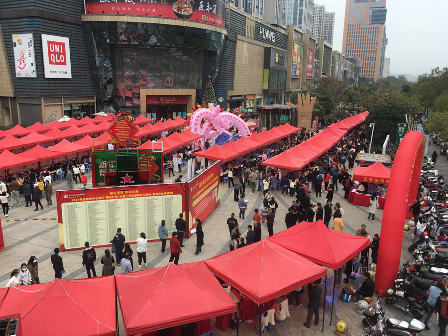 2024年2月17日(農歷正月初八),由龍巖市人力資源和社會保障局和新羅區(qū)人民政府聯(lián)合主辦,龍巖市公共就業(yè)和人才服務中心、龍巖市新羅區(qū)人力資源和社會保障局承辦,龍巖高新區(qū)(經開區(qū))管委會、廈龍合作區(qū)管委會、龍巖市退役軍人事務局、龍巖市總工會、共青團龍巖市委員會、龍巖市婦女聯(lián)合會、龍巖市殘疾人聯(lián)合會協(xié)辦,龍巖好工作人才網實施的2024年龍巖市中心城區(qū)“春風行動”大型人力資源招聘會在萬寶廣場一號門外順利舉行。