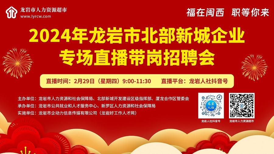 “福在閩西 職等你來”2024年龍巖市北部新城企業(yè)專場直播帶崗招聘會(huì)