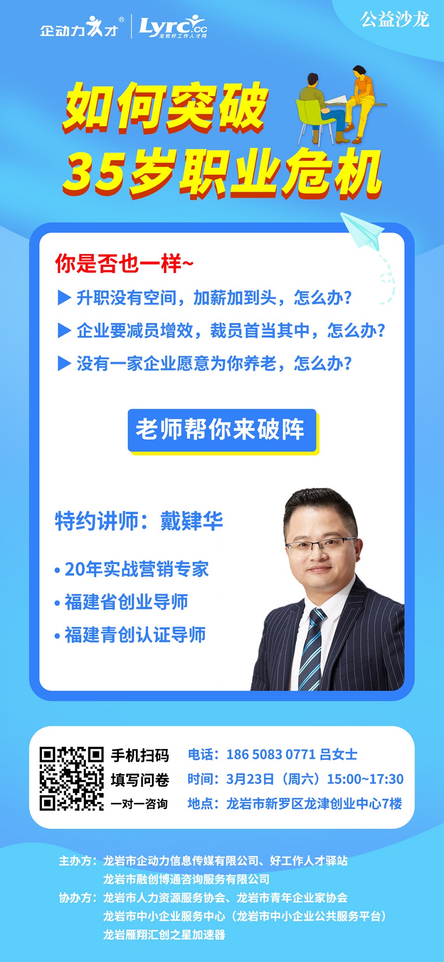 【3月23日公益沙龍】“如何突破35歲職業(yè)危機(jī)”開(kāi)始報(bào)名啦!
