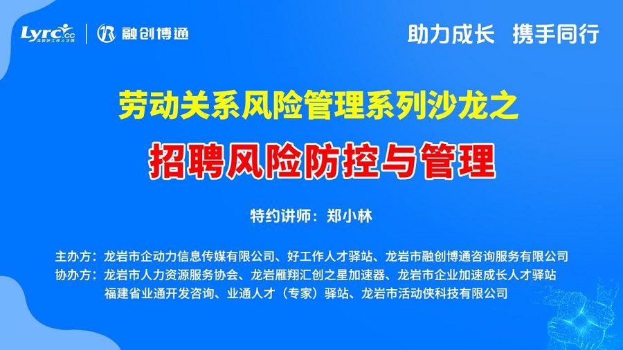 4月13日下午,由龍巖市企動力信息傳媒有限公司和龍巖市融創(chuàng)博通咨詢服務有限公司共同主辦,聯(lián)合龍巖市人力資源服務協(xié)會、龍巖雁翔匯創(chuàng)之星加速器、福建省業(yè)通開發(fā)咨詢有限公司、龍巖市活動俠科技有限公司共同協(xié)辦的《招聘風險防控與管理》的公益沙龍活動圓滿落幕。特邀有多年企業(yè)用工風險實戰(zhàn)經(jīng)驗的福建公治律師事務所主任鄭小林律師,用法律解讀與實際管理案例相結(jié)合的方式,帶領HR們快速識別招聘風險,提升招聘風險防控管理的能力。此次到場參加的30名HR們都滿載而歸,意猶未盡。