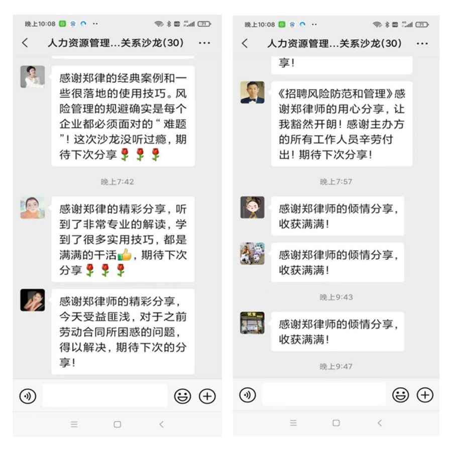 在提問環(huán)節(jié)中,HR們個個熱情高漲,爭先恐后積極搶麥,希望能在現(xiàn)場得到鄭律師的專業(yè)解答。從招聘流程中的細節(jié)問題到勞動法中的法規(guī)應用,鄭律師不僅耐心地一一為每個問題的小伙伴解答,還為他們提供了實用性的防控策略,讓在場的小伙伴們受益匪淺;迎h(huán)節(jié),HR們不僅增長了專業(yè)技能,還結(jié)識志同道合的朋友,大家共同探討工作中的問題和解決方案,互相學習和鼓勵。