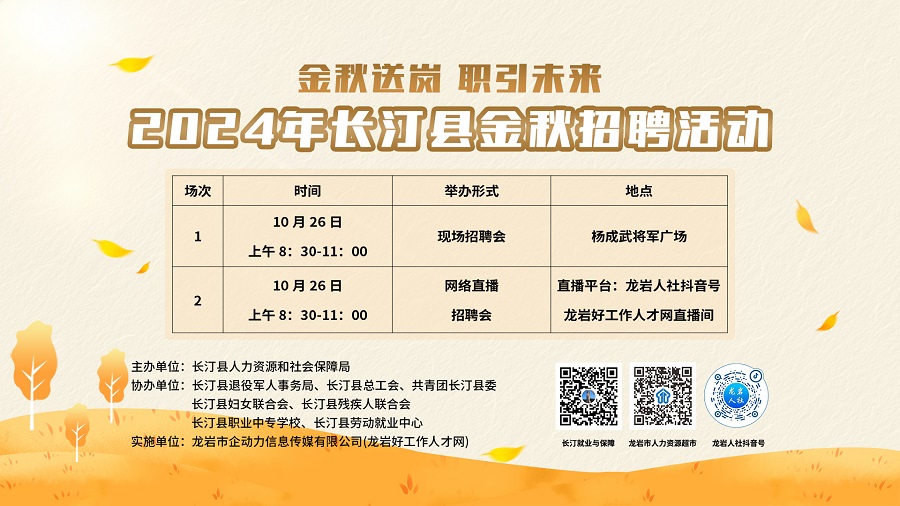 【10月26日】2024年長汀縣金秋招聘活動