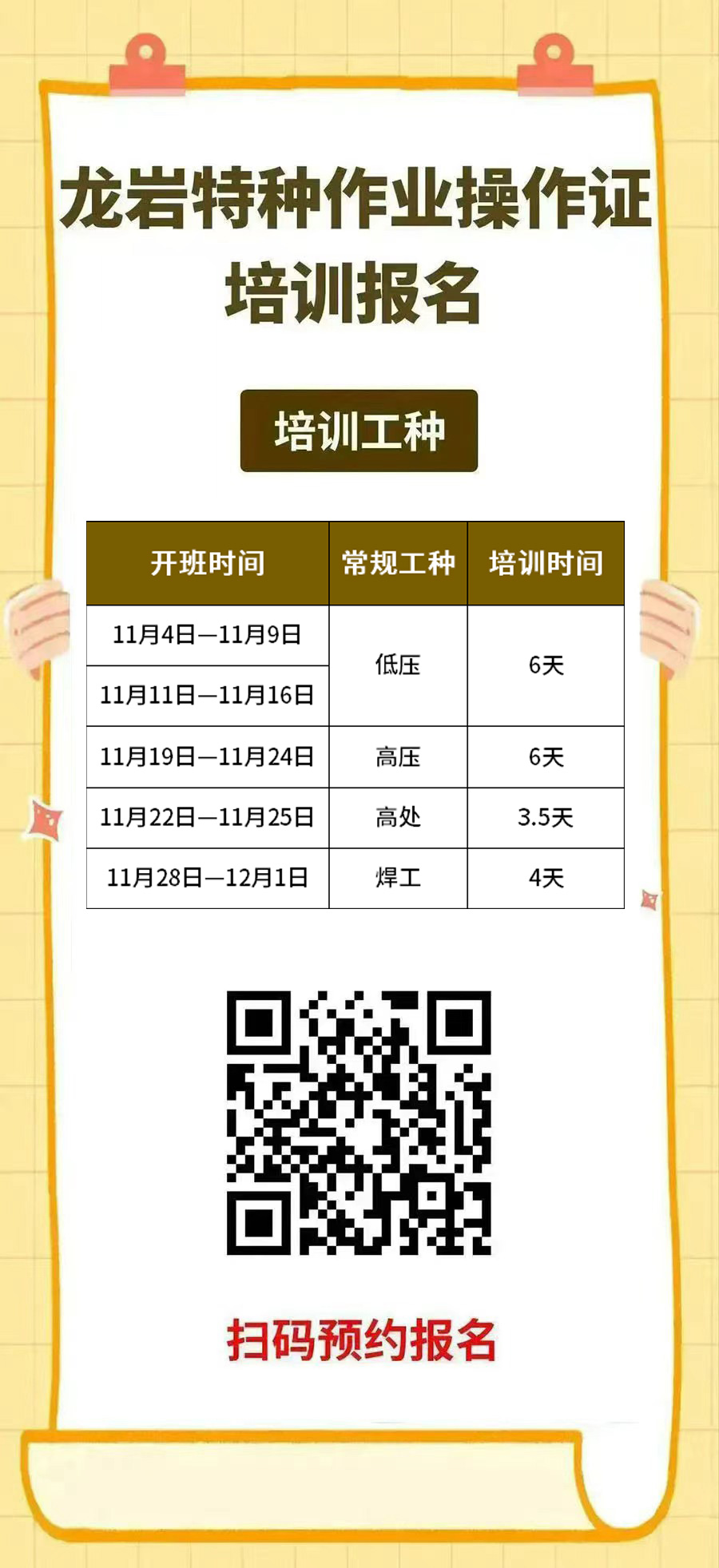 【11月開班】龍巖特種作業(yè)操作證,電工證,焊工證,高空作業(yè)證,報名培訓(xùn)報名火熱進行中...