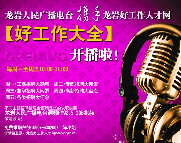 龍巖人民廣播電臺(tái)攜手龍巖好工作人才網(wǎng)lyrc.cc開辟《好工作大全》欄目