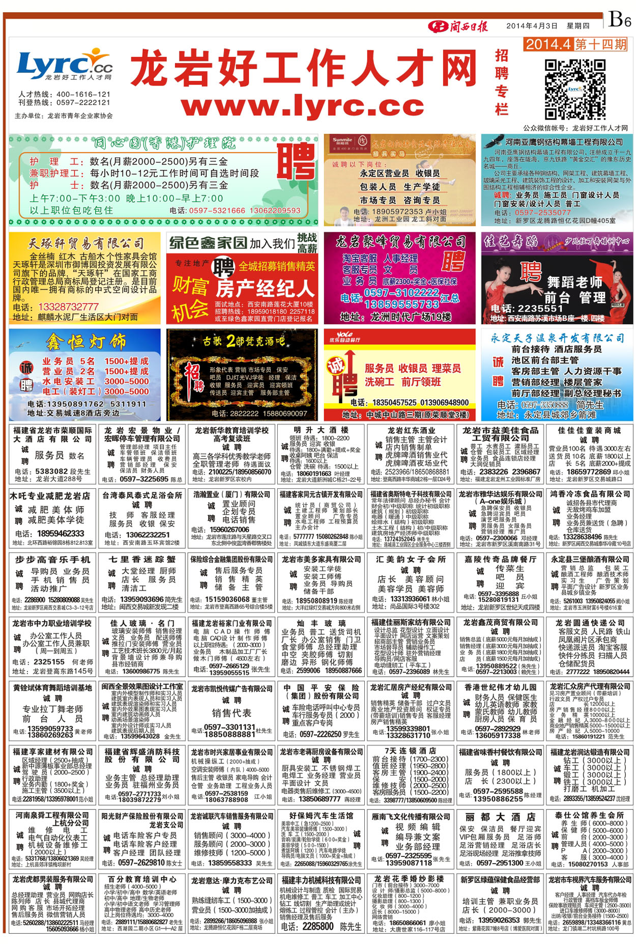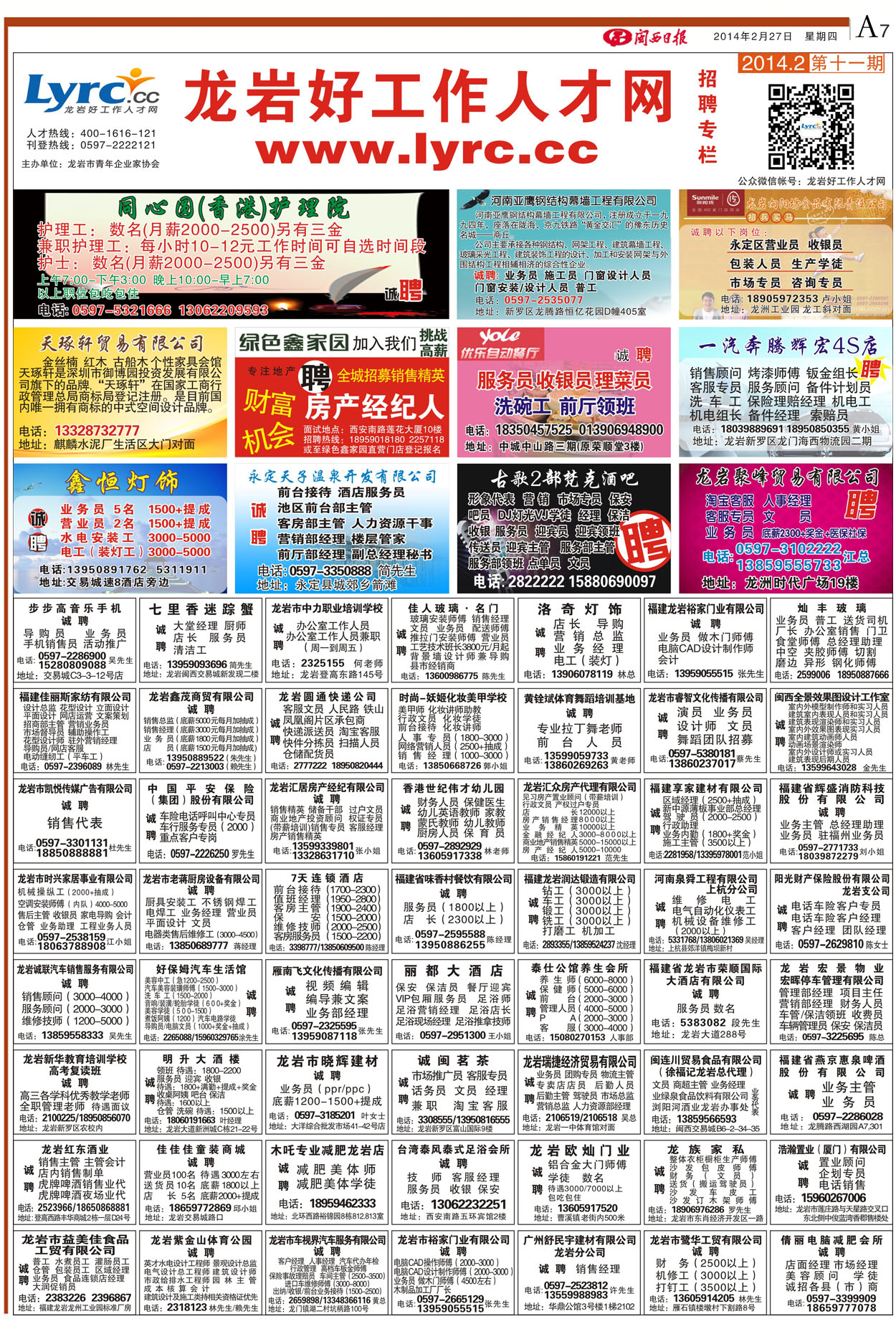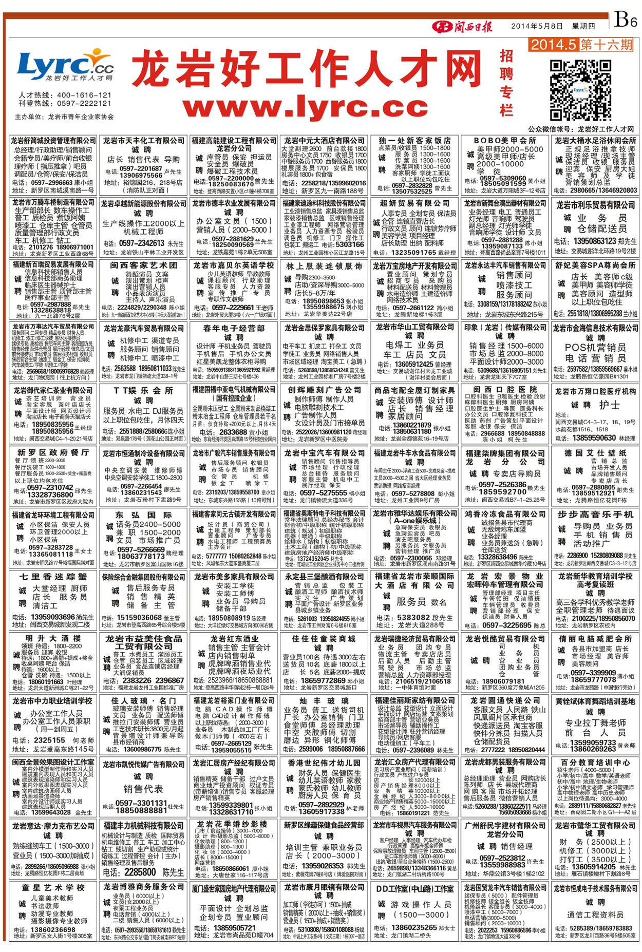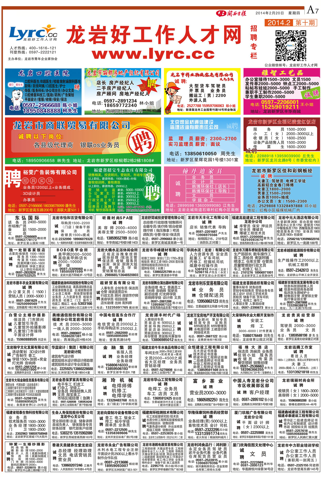 服務(wù)熱線:0597-2222121 全國(guó)人才服務(wù)熱線:400-1616-121 客服QQ: 企業(yè)交流群:148464179 信息監(jiān)督員:黃麗萍 不良信息舉報(bào)熱線:0597-2222121
