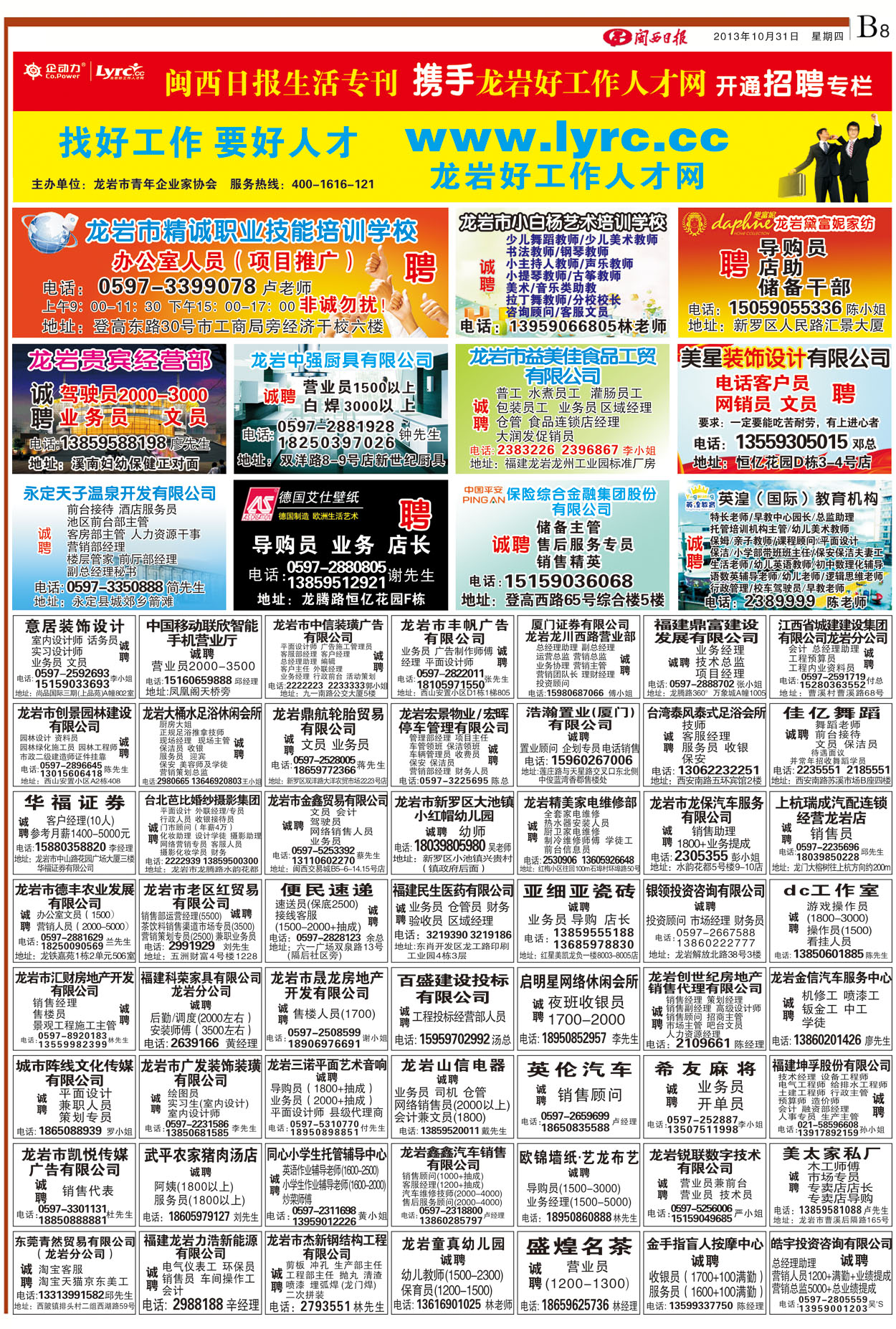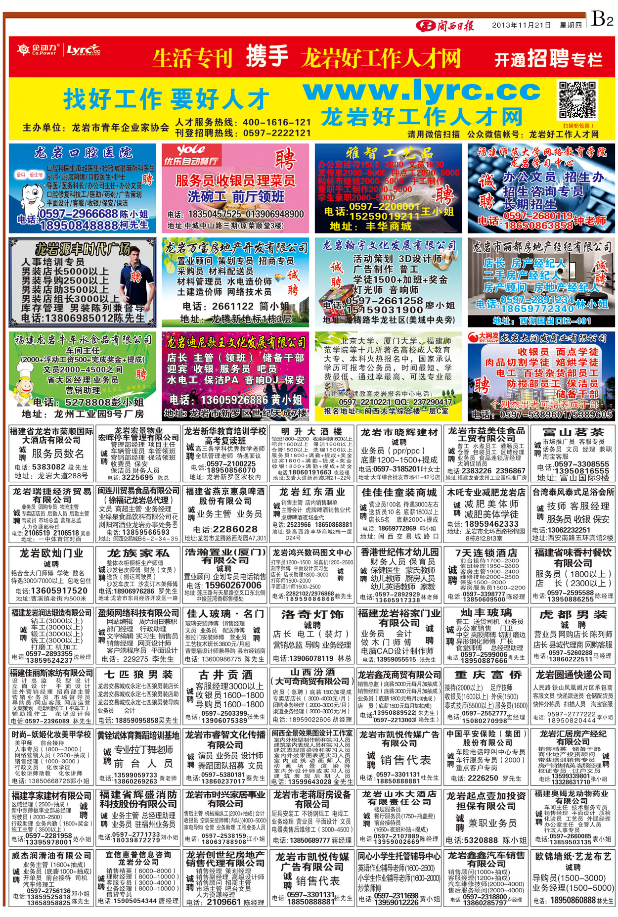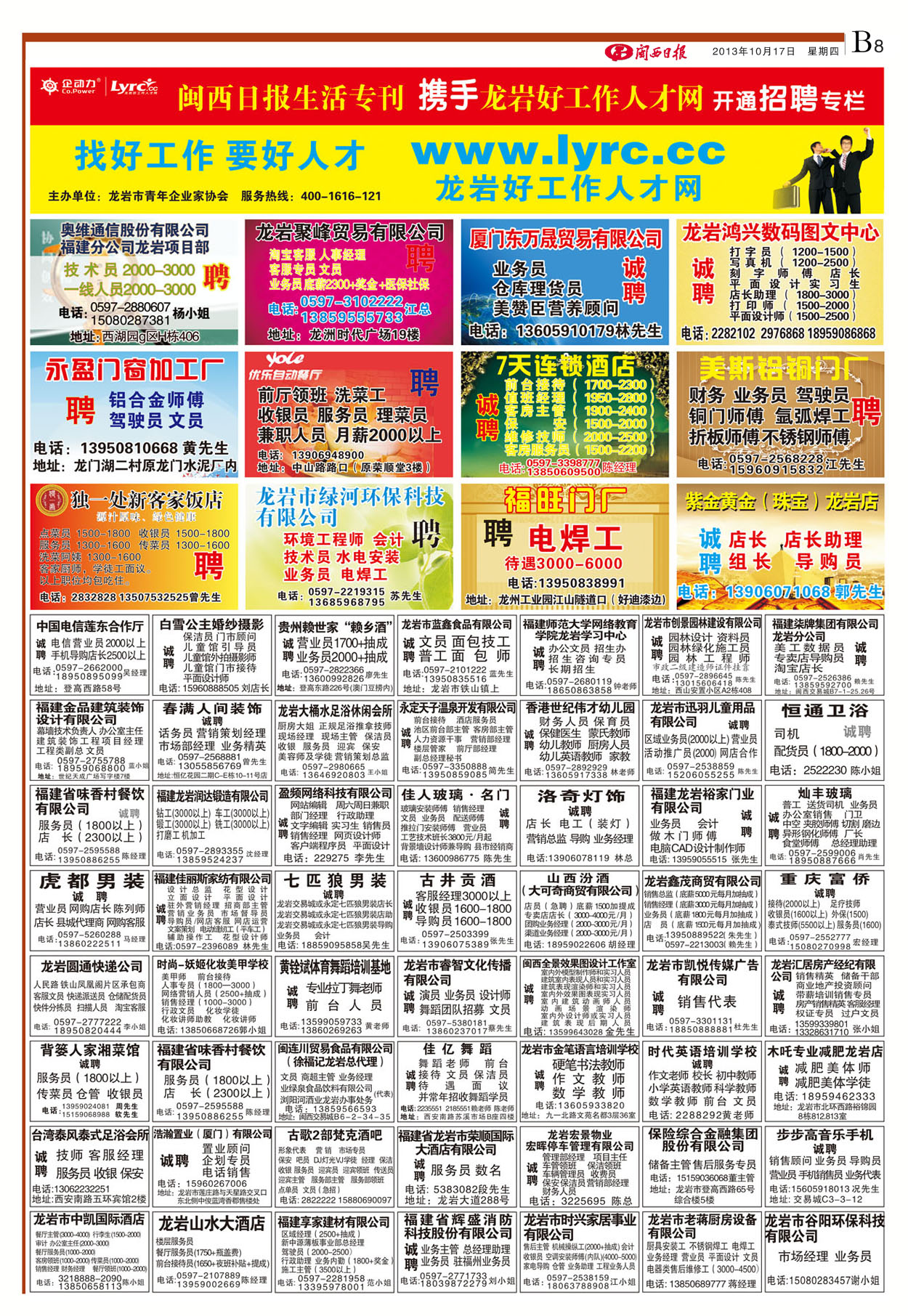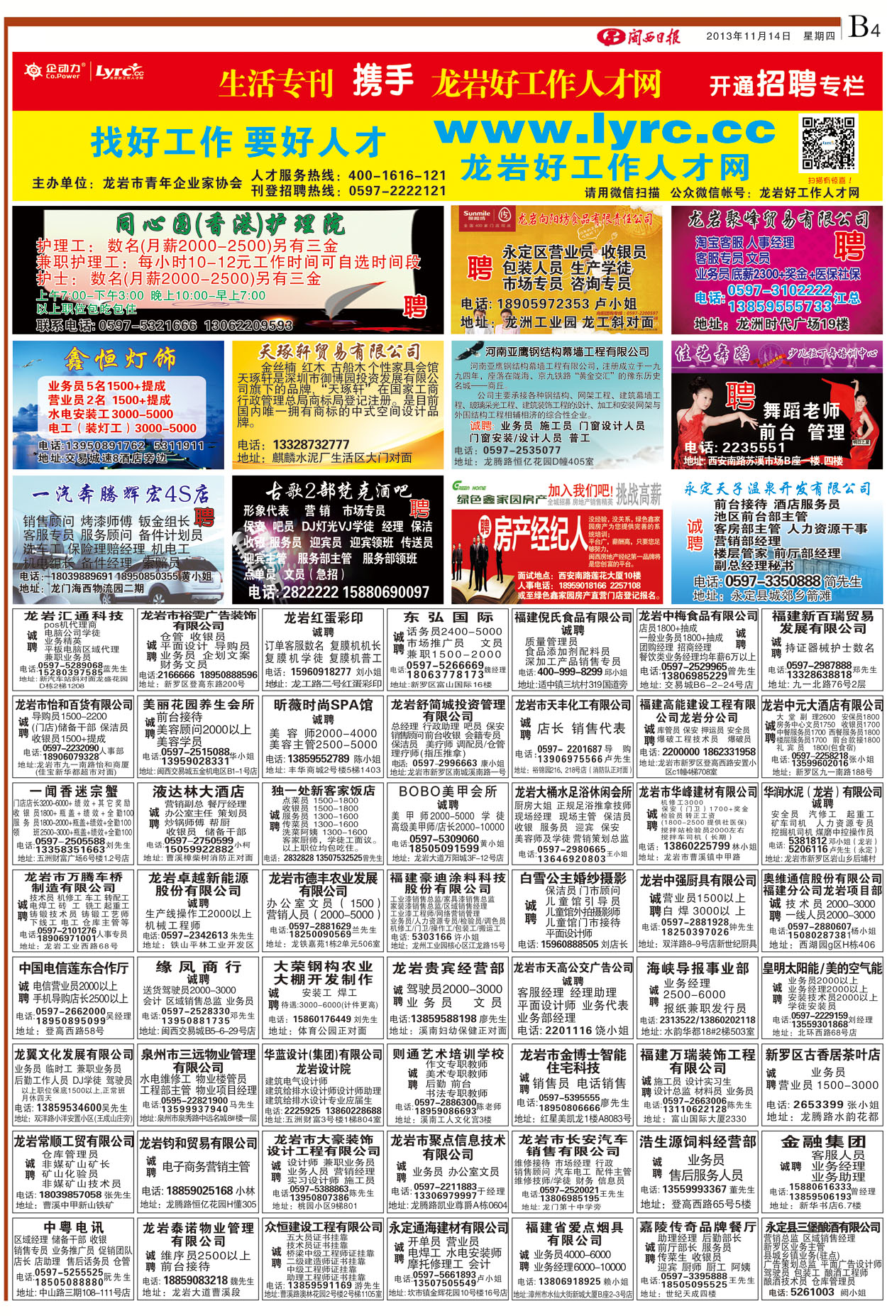服務(wù)熱線:0597-2222121 全國(guó)人才服務(wù)熱線:400-1616-121 客服QQ: 企業(yè)交流群:148464179 信息監(jiān)督員:黃麗萍 不良信息舉報(bào)熱線:0597-2222121